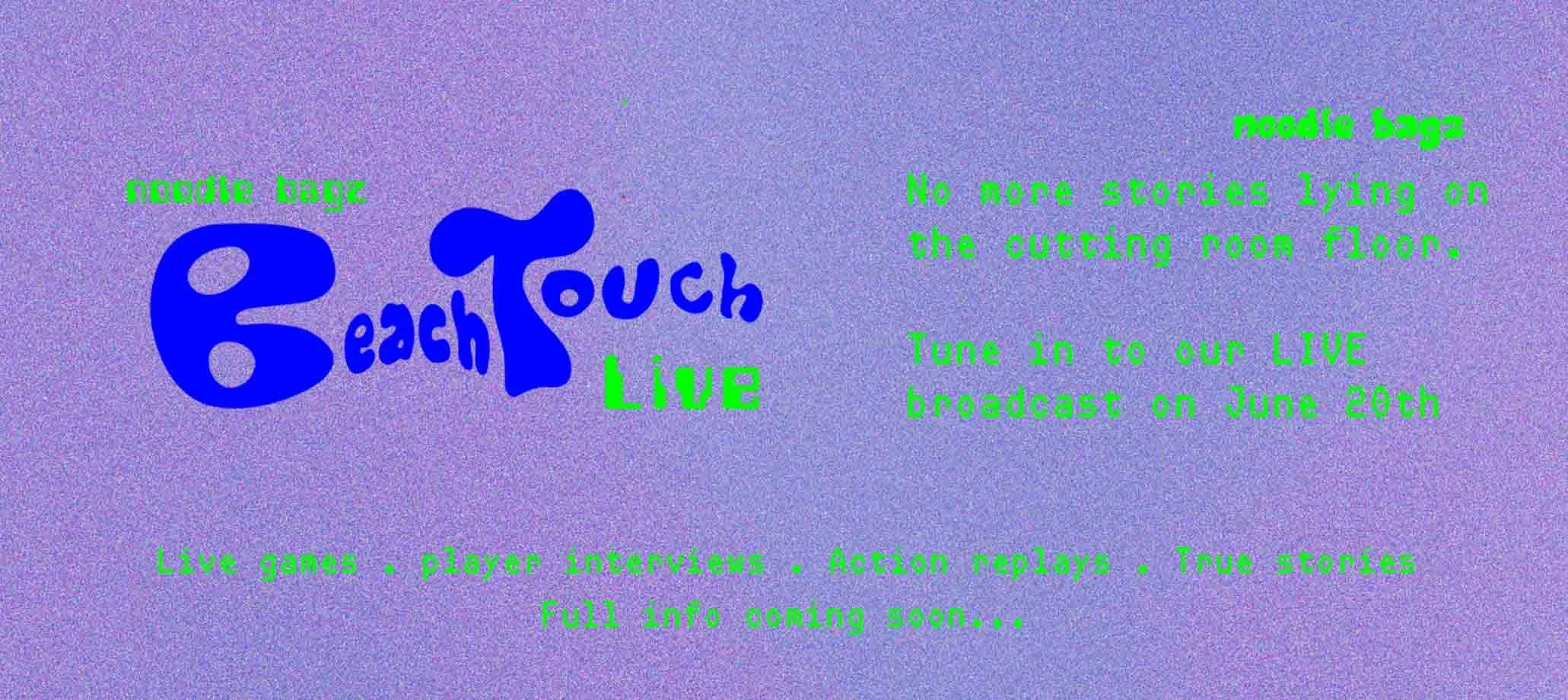 Beach Touch Live is a Tournament broadcast with LIVE action, player interviews, replays, back stories and more