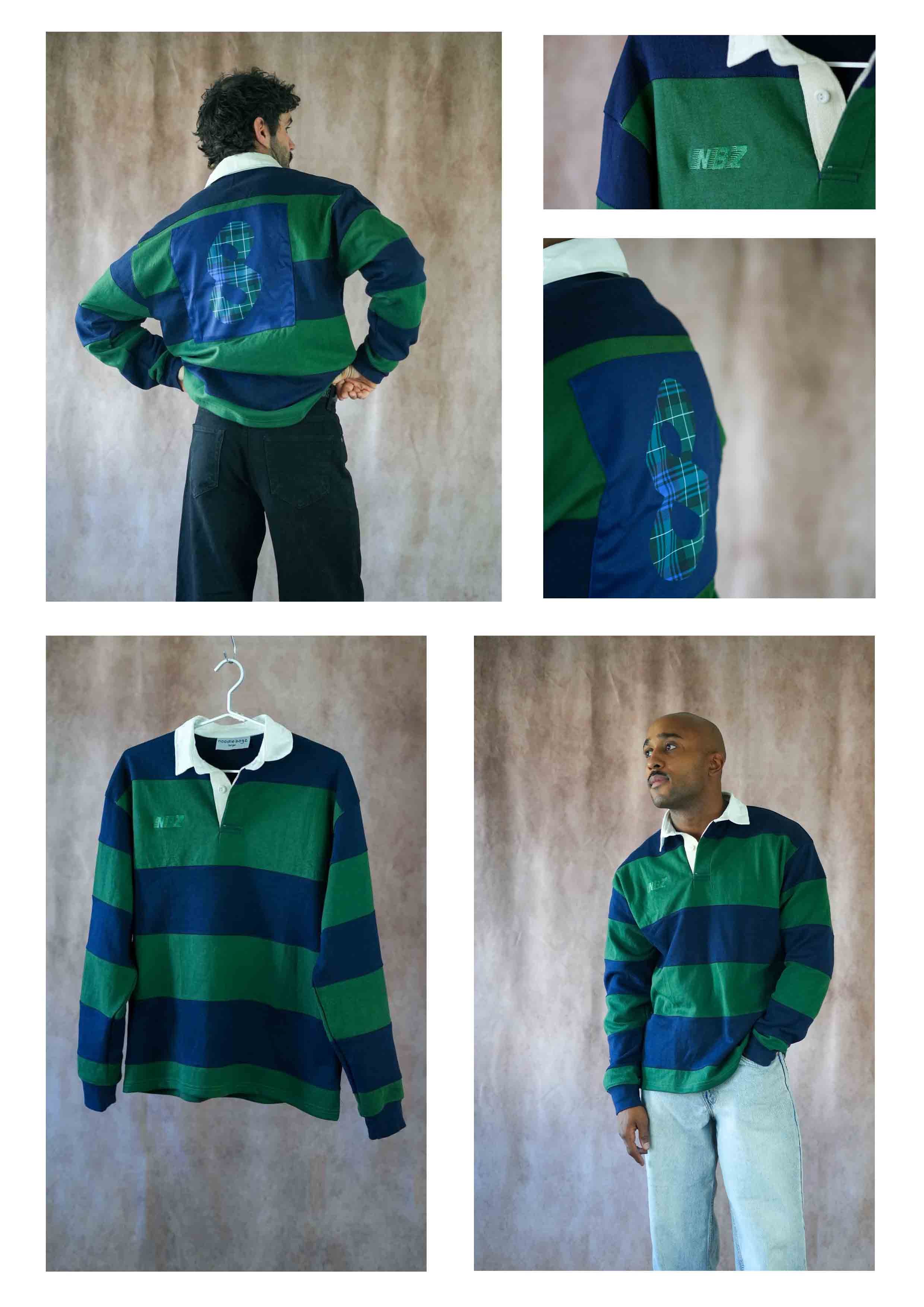The traditional icon of our winter jersey range. Navy and forest green wide stripes on heavyweight, brushed cotton. Only 15 units available uniquely numbered 1-15. The perfect, one of a kind, Christmas gift.